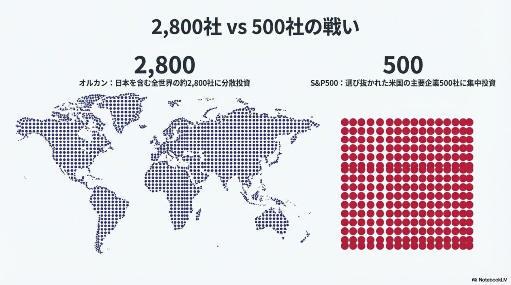 | 投資対象 | 日本を含む全世界の約2,800社 | 米国の主要企業500社 |