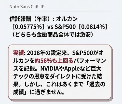S&P500の方が少しだけ、信託報酬の運用コストが高いんだね。