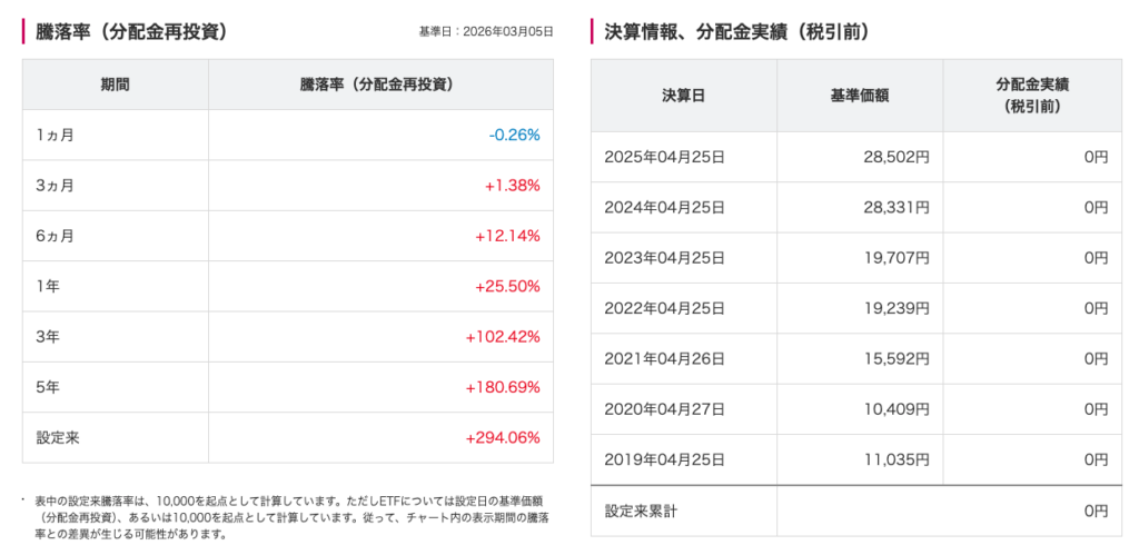 *設定来(2018年10月)から2026年3月5日時点の基準価額までの騰落率を算出。